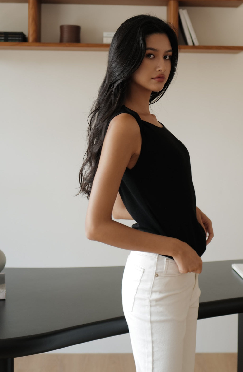 Midnight whisper knit top in black / pink / beige / grey