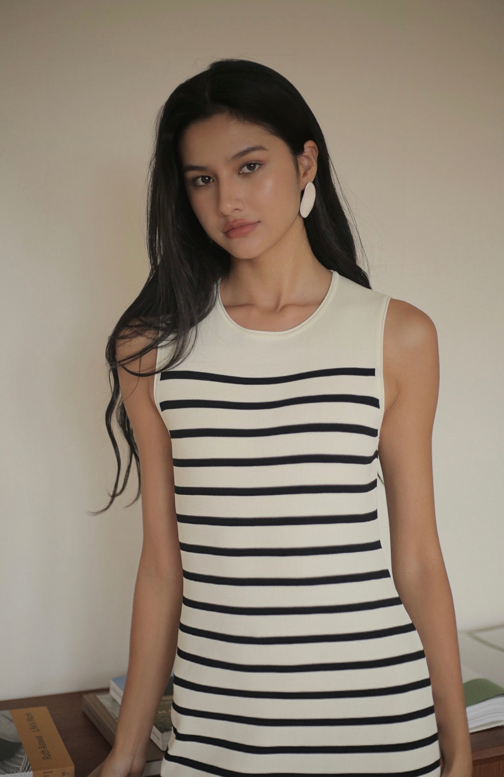 Vanessa striped knit dress in white/khaki